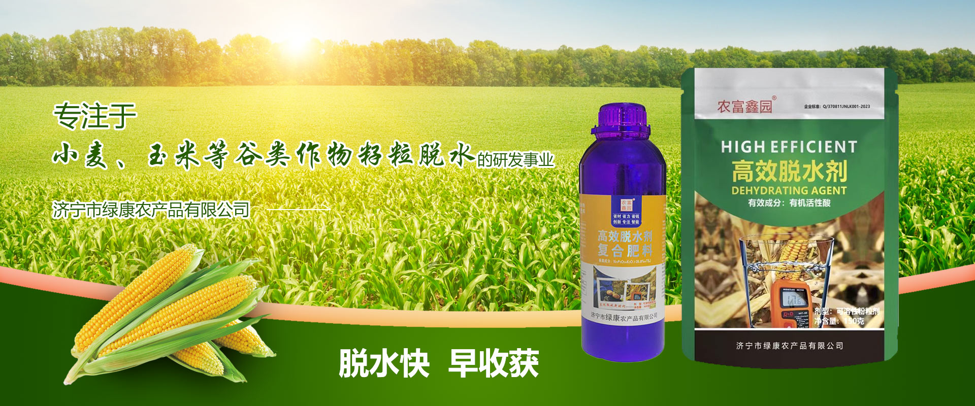 公司成立于2016年,坐落于歷史悠久的孔孟之鄉(xiāng),運(yùn)河之都的文明城市濟(jì)寧,一直秉承著“全心全意為中國農(nóng)業(yè)服務(wù)”為宗旨,解決糧食收獲時(shí)水分含量大、不易存儲(chǔ)的問題,綠康農(nóng)業(yè)專注于“小麥、玉米等谷類作物籽粒脫水”的研發(fā)事業(yè),2020年和山東農(nóng)業(yè)大學(xué)達(dá)成戰(zhàn)略合作關(guān)系,針對玉米脫水劑一項(xiàng)發(fā)明專利進(jìn)行全國運(yùn)營,為中國糧食作物的減少烘干、減少晾曬、節(jié)能減碳、提質(zhì)增效的新型技術(shù)發(fā)明,解決中國農(nóng)民30年來玉米的貪青晚熟、積溫不夠問題而研究出來的新方法,提速農(nóng)業(yè)4.0時(shí)代機(jī)械化生產(chǎn),開啟籽粒收割新時(shí)代...